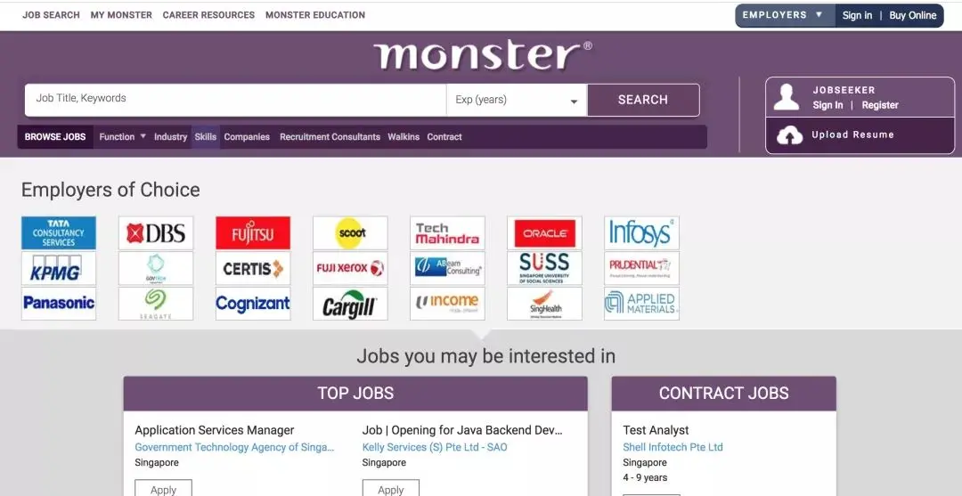 Monster可能是是美国目前功能最全面的求职网站,求职者不仅可以搜索工作和发布简历,改简历、面试或者其他和求职有关的信息也可以在这个网站找,资源非常丰富。此外,Monster还提供职业评估和个人工资报告信息。