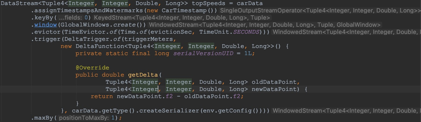 上面的例子中我们首先会对每条数据进行时间抽取,然后进行 keyby,接着依次调用 window(),evictor(), trigger() 以及 maxBy()。下面我们重点来看 window(), evictor() 和 trigger() 这几个方法。