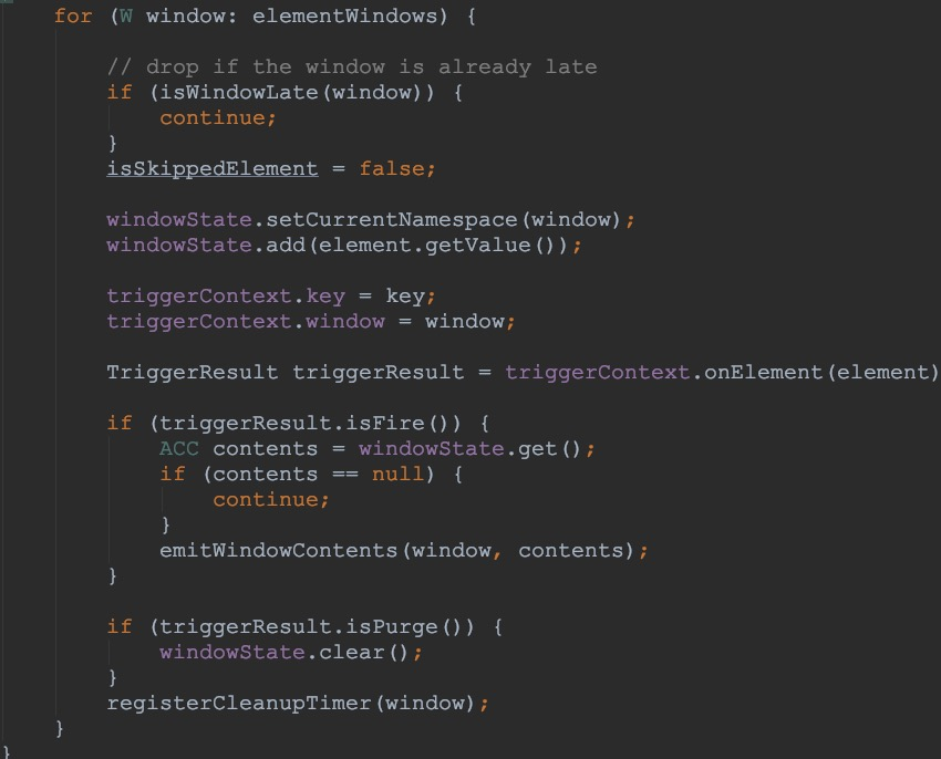 首先给出具体的答案:从接口上可以认为没有区别,但是每个 Window 会属于不同的 namespace,而非 Window 场景下,则都属于 VoidNamespace ,最终由 State/Checkpoint 来保证数据的 Exactly Once 语义,下面我们从 org.apache.flink.streaming.runtime.operators.windowing.WindowOperator 摘取一段代码进行阐述