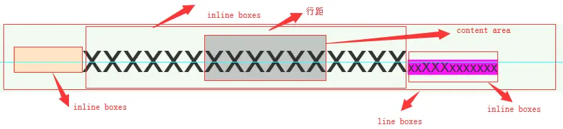 行框盒子line boxes就像包裹住一行内容的一个虚拟的矩形框,由一个个inline boxes组成