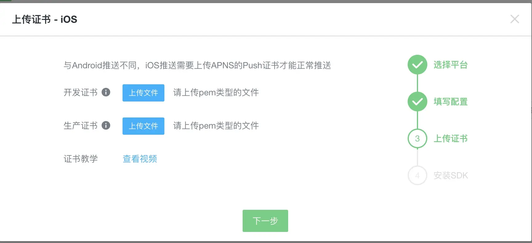 ios使用信鸽推送时,需要上传开发证书和生产证书,这两个证书至少需要上传一个