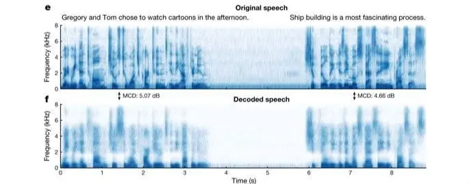 为分析合成语音对真实语音的重现准确度,研究人员将原始语音与合成语音的声波特征作了比较,发现神经网络解码的语音,相当完整地重现了患者所述原始语句中的单个音素,以及音素间的自然连接和停顿。