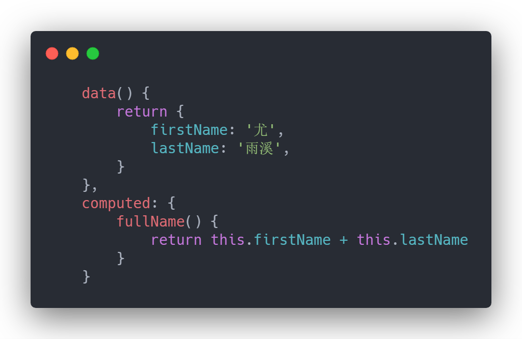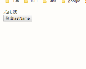 fullName 依赖了 firstName 和 lastName,点击 button 会修改 lastName, 同时 fullName 会重新计算,视图变成"尤大大"