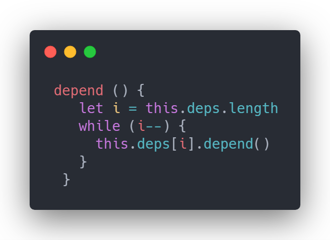 接着就会遍历每个 dep 执行 dep.depend 方法: