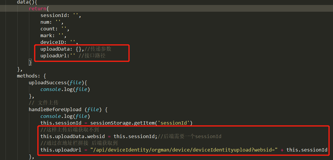 iview中upload后端接收不到前端传递的数据 前端小白呀 2019-05-06 1,534 阅读1分钟 最近的项目中使用了iview 一个很简单的需求 上传文件 用了iview的 Upload插件 在用action属性访问接口的时候使用data属性传值时后端始终无法接收到数据后来发现 在Upload插件使用data属性进行传值时 后端接收时需要像址传值那样接收数据 Upload插件不具备ajax的data传值功能 ,即使在Network中显示给后端传递的参数,后端也获取不到,可以在地址栏进行拼接实现。 有什么好的方法还请大神指教。