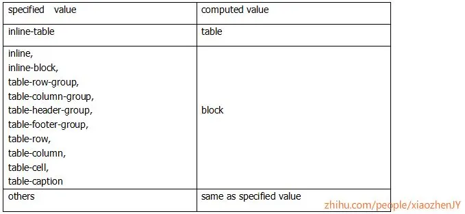 命运:display的computed value请参照下方表格,属于普通流中的block formatting