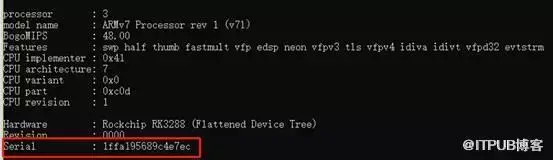 方法: Adb 命令执行 adb shell cat /proc/cpuinfo ,查看 cpu 信息,确保 Serial 号不为空,若为空,验证失败。
