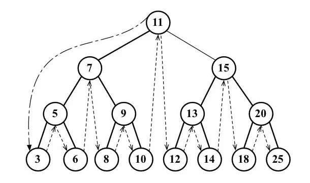 中序遍历是一种以从最小到最大的顺序访问所有节点。中序遍历的一种应用就是对树进行排序操作