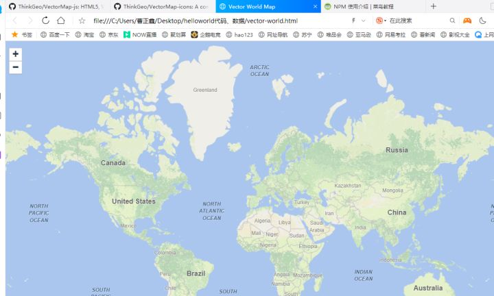 启动Visual Studio Code, 创建一个”index.html”, 引入之前提到的VectorMap.js脚本库和样式库后, 在”<body>”标签中添加地图载体”<div>”, 如下: