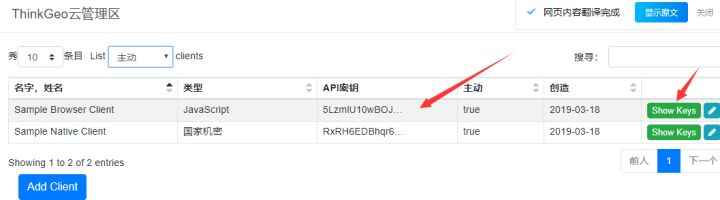 注意: 在代码中“your-ThinkGeo-Cloud-Service-Key”, 将其替换为自己刚刚申请的 API Key.