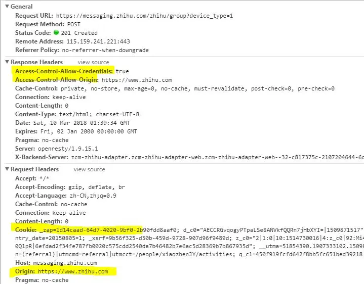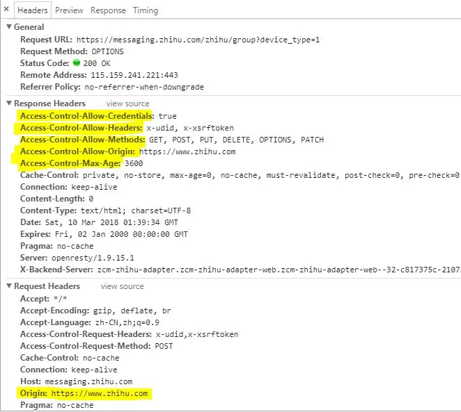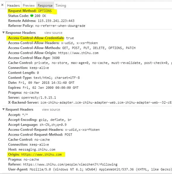 在预检请求中,请求头并不会附带证书,响应头会回应:Access-Control-Allow-Credentials:true。