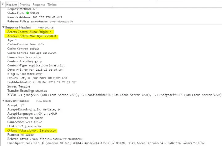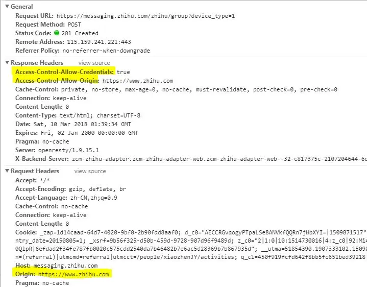 有一点需注意:若服务器端同意请求携带信息,则Access-Control-Allow-Origin不能为*,只能为请求头中指定的Origin值。