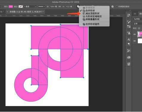 4.利用路径选择工具进行路径的选择并进行布尔运算