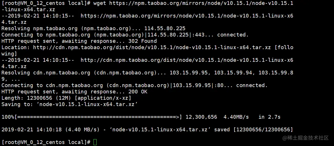 wget https://npm.taobao.org/mirrors/node/v10.15.1/node-v10.15.1-linux-x64.tar.xz
