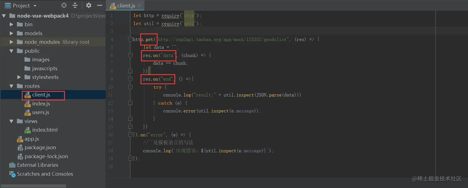 http.ClientRequest类 :这个属于客户端的类,是当我们的node.js服务需要嗲用第三方数据接口的时候,我们的服务就变成了客户端,第三方接口就变成了服务端,就需要这个类。