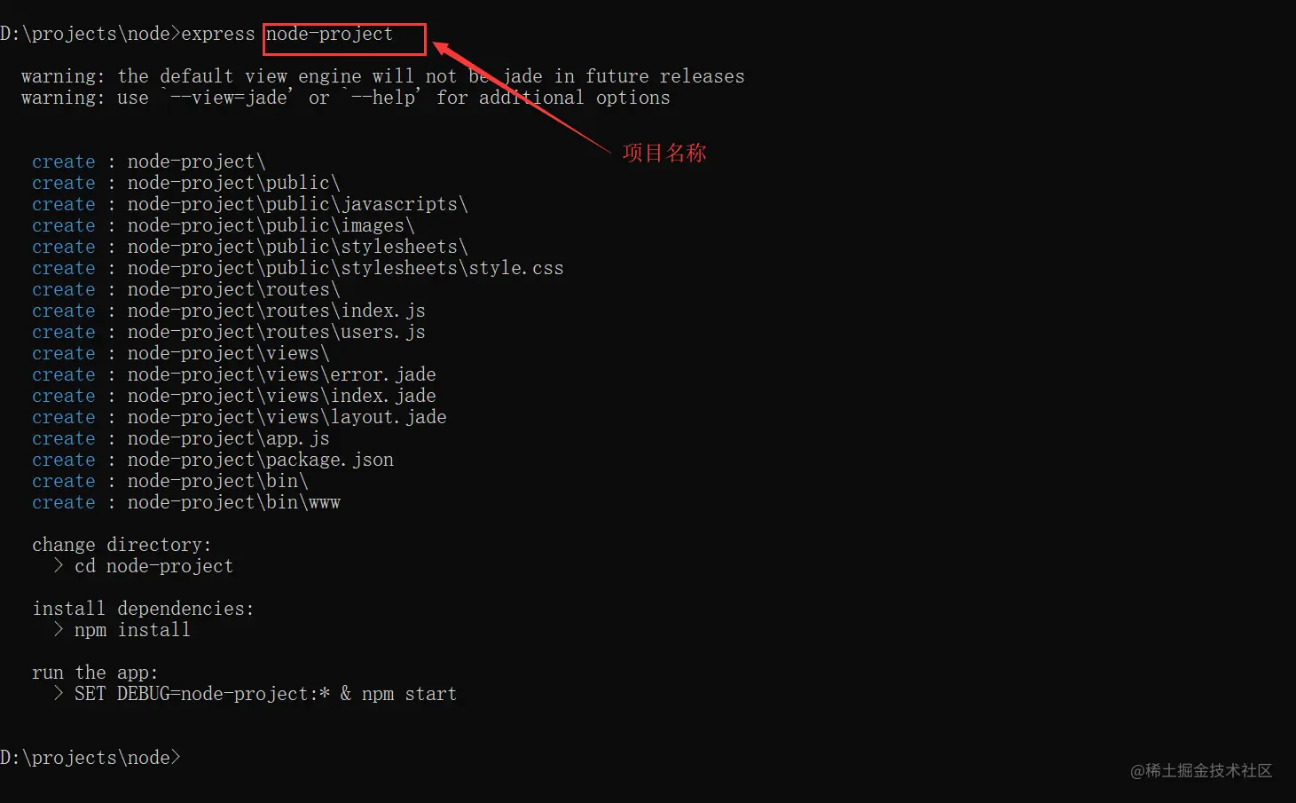 其中node-project是项目名称,如下图: