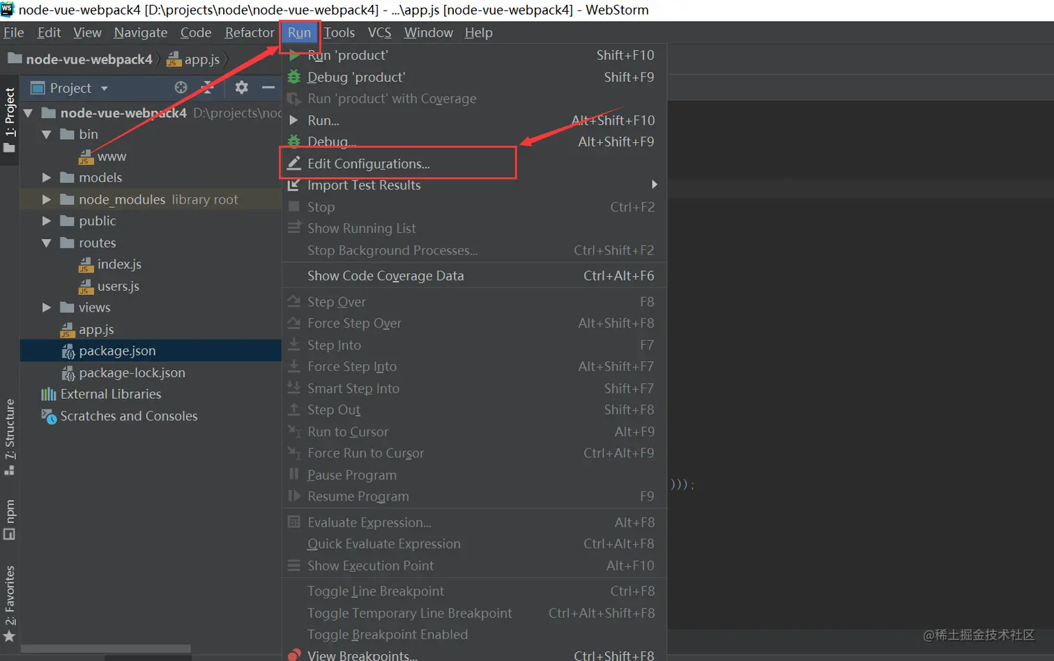 2、webstorm配置启动入口