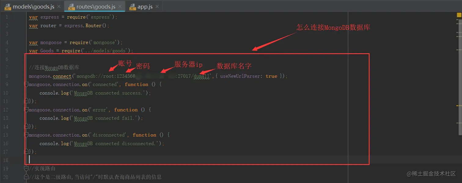 当你查询接口时,需要通过路由调model实例,通过model提供的api查询MongoDB数据库