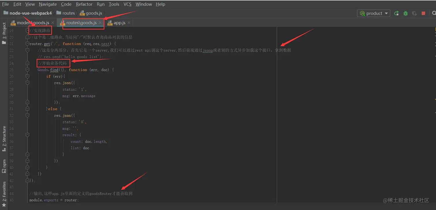 model.exports = mongoose.model('Good',productSchema,'good')实现完商品这个model