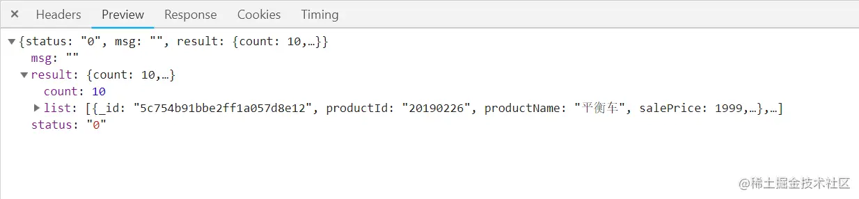 我请求的数据也能过来,在控制台查看network里面结构如下: