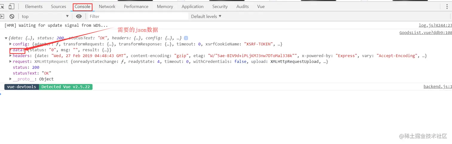 多返回了config,headers,request等信息,因为接口会返回所有的信息。