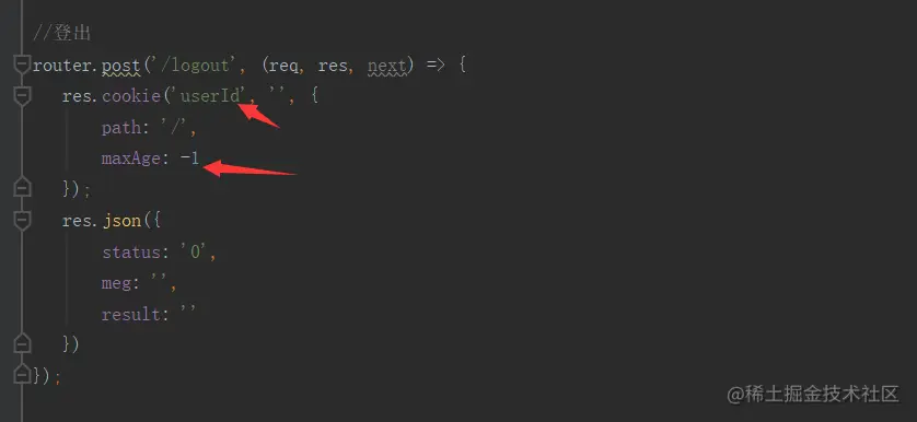 退出原理是操作cookie,是把存在cookie的userId的有效期设置为-1失效状态