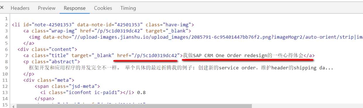 我关心的只是文章标题和文章链接,如上图高亮字段所示。