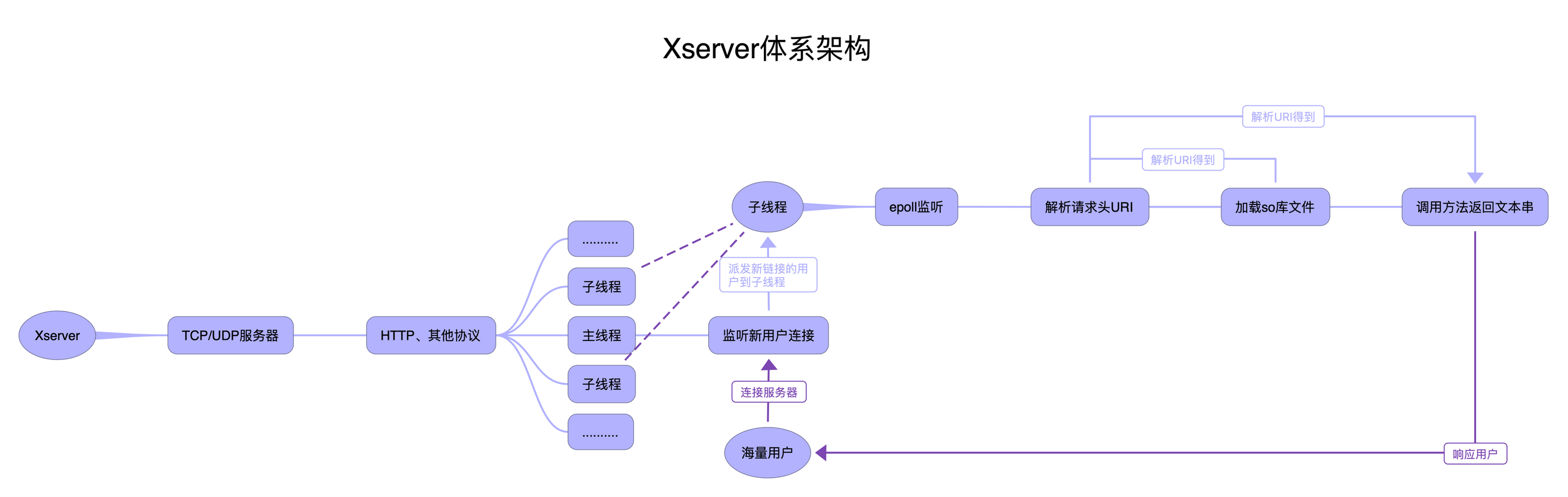 Xserver的体系架构简单、性能把控度100%,因为采用C语言开发因此能够将机器的性能压榨到极致,比较适合推送服务、消息IM系统等并发场景比较高的系统使用。