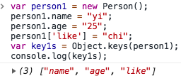 要取得对象上所有可枚举的实例属性,可以使用Object.keys()方法,其返回一个包含所有可枚举属性的字符串数组