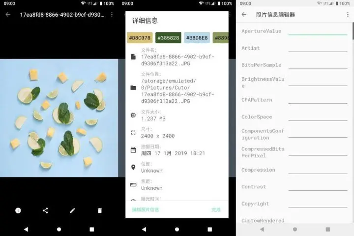 除去这些基础功能外,Camera Roll 也不乏亮点功能,通过它可以编辑、修改图片的 Exif 信息。同时它还支持从图片中拾色并于照片详情中显示,提取的色值可以通过点击复制到剪切板,方便设计师朋友提取图片中的色值(对于单纯需要这一功能或是有更高要求的朋友来说,Focus Go 加 Graphice 或许是更好的选择)。