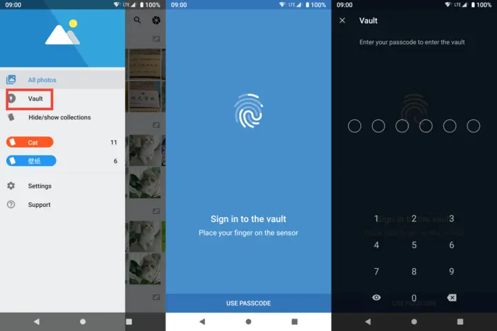 保护你的隐私——给照片加锁,Focus 支持将照片存入「保险箱」并提供了密码和指纹解锁的方式。