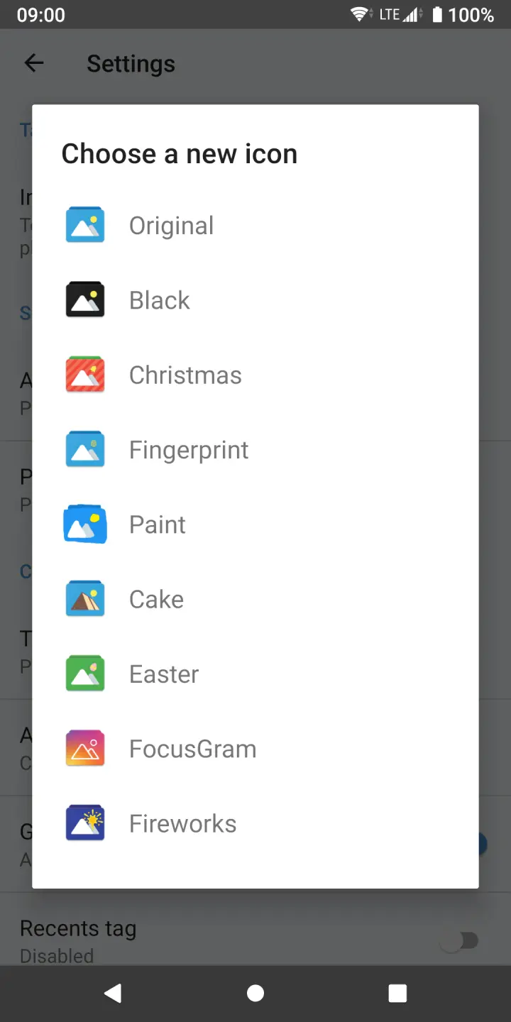 由于应用长期没有更新,所以并没有像作者的其他应用一样支持 MD2,不过就一个本地图库管理应用而言,当前的设计也完全可用,应用本身提供了多个图标以供更换,但是不支持自适应图标,这一个小缺陷让我比较介意。希望作者早日想起这个应用并继续维护它。