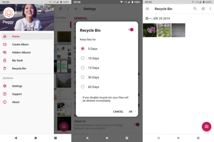 简约图库由国人开发,因此本地化程度高是一大优势,而其他几款应用在中文支持上或多或少都有问题。除去在其他应用上都有的功能外,简约图库还贴心地提供了「回收站」功能,允许我们从中恢复已删除的照片,这样即使误删了也有挽回的余地。