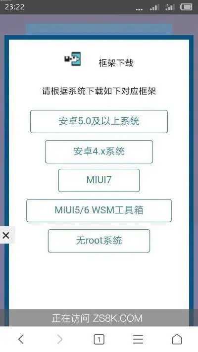如果你的系统是5.0或5.0以上的系统版本,选择第一项"安卓5.0及以上系统"安装激活即可,如果系统是5.0以下版本,选择第二项“安卓4.x系统”进行安装即可,如果系统是miui7系统版本,则选择第三项“MIUI7”进行安装激活,miui5/6则安装wsm框架即可,注意以上各个版本都需要在ROOT前提下进行激活,如果刚好你的系统不能获得ROOT权限,可尝试安装“无ROOT系统”版本的框架。