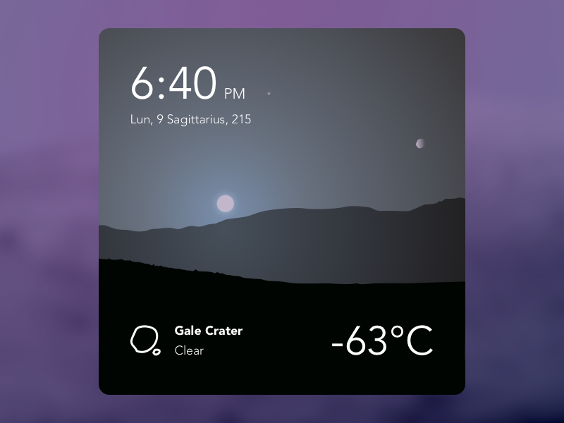 好看是真的好看,而且背景是火星日落的实拍(调整过),但是这个卡片存在一个问题:卡片之外的部分怎么办呢?我很难去扩展啊,这个卡片连一屏都不到,很难拿来直接用的(也许是应用场景的问题)。于是我只好换了一个,也就是现在这一版的样子了。最近在读《Refactoring UI》这本书,我发现对于开发者而言设计还是一个比较难的事情,尤其是配色,虽然市面上有那么多帮你选择颜色的工具和网站,但是当真正要做一个产品的时候,仍然很难找到一个舒服的配色。
