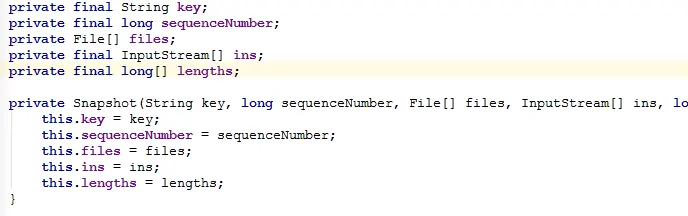 return new Snapshot(key, entry.sequenceNumber, files, ins, entry.lengths);