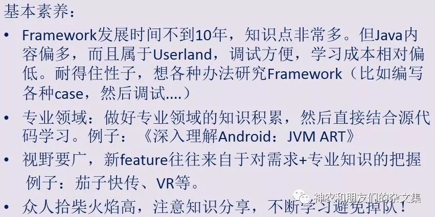 系统层这几年发展也很快(想想Android的发版速度),靠个人力量来追踪这么一个复杂系统已经很困难了,需要大家一起来知识共享。
