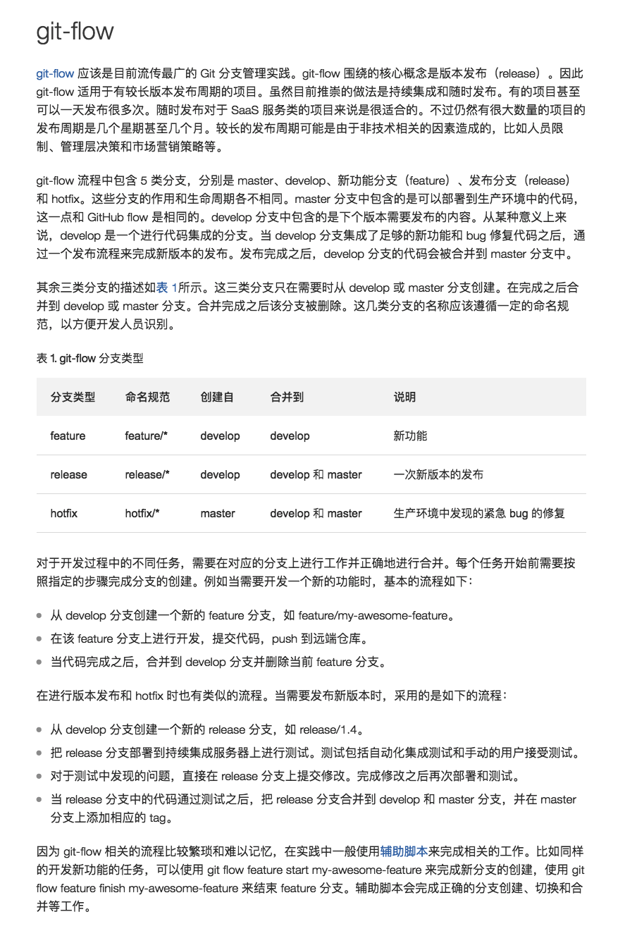 git-flow 白开水爱学习 2019-05-07 204 阅读1分钟 来源:www.ibm.com/developerwo… 目前项目中在用 git-flow 流程在管理迭代. 主要在用的东西不多, 还要多研究和学习. 以此篇文章来开始我的博客生涯.