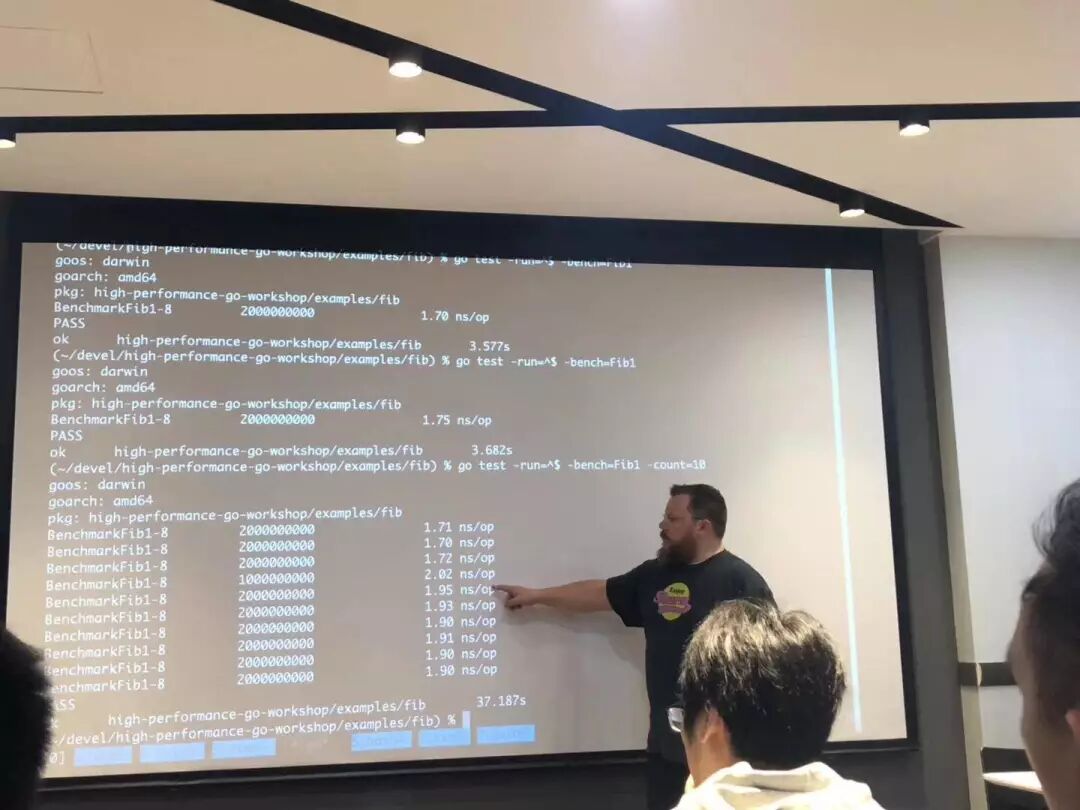4月26日,国际知名讲师 Dave Cheney 受邀在大会前一天就给报名参加培训的 Gopher 进行了深度的培训,本次会前培训 Dave 分享的主题是高性能Go 研讨会,分享话题围绕着 1. 微处理器性能的过去、现在和未来;2. 基准测试;3. 性能测量和分析;4. 编译器优化;5. 执行跟踪程序;6. 内存和垃圾收集器;7. 提示和回顾展开,培训结束后, Dave 为每一位参加培训的同学都颁发了自己亲笔签名的课程结业证书。