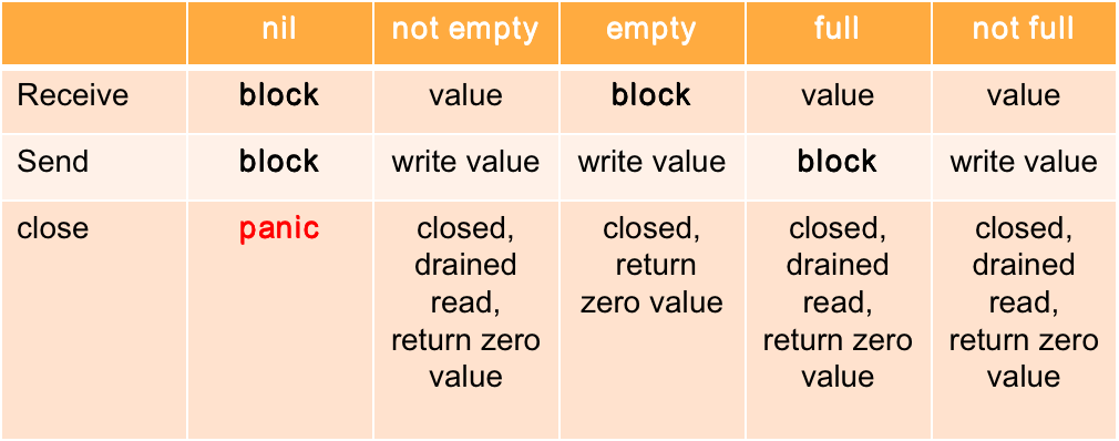 - 第n个send一定happen before第n个receive完成, 不管是buffered channel还是unbuffered channel