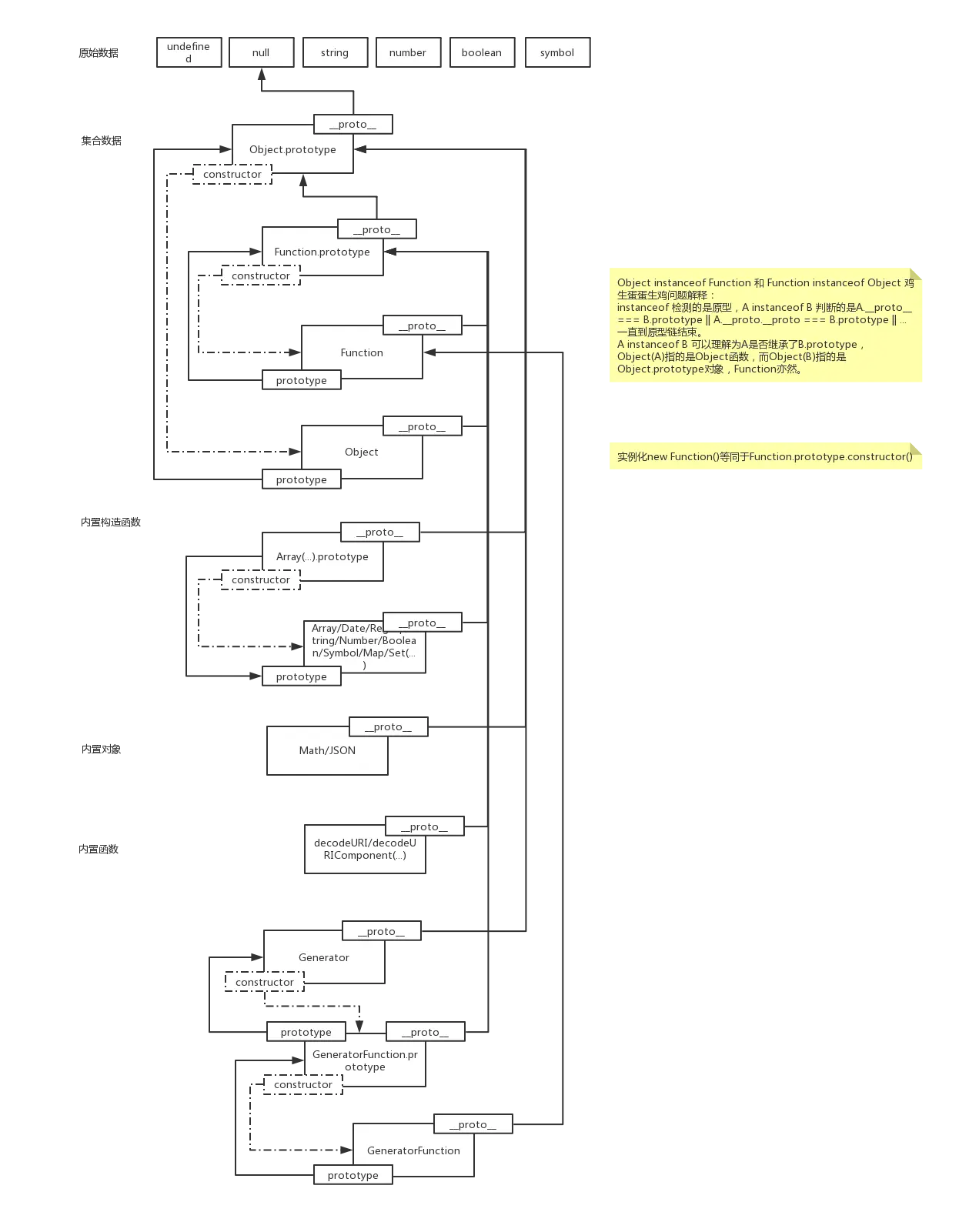 JavaScript数据结构和原型链之间的关系如下图: