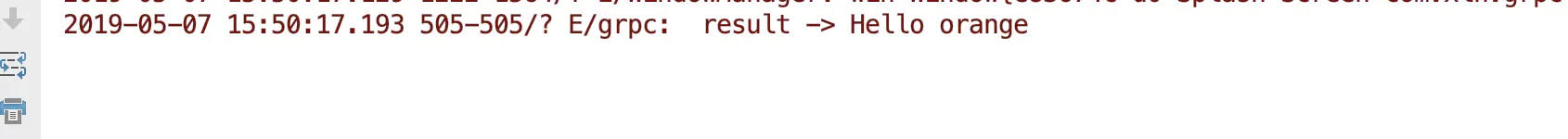 使用AsyncTask构建请求,然后会涉及到四个对象:Channel、Stub、Request以及Reply。 最后别忘记添加网络权限,运行到手机上,我们如果看到如下日志信息,说明我们使用grpc连接成功了!