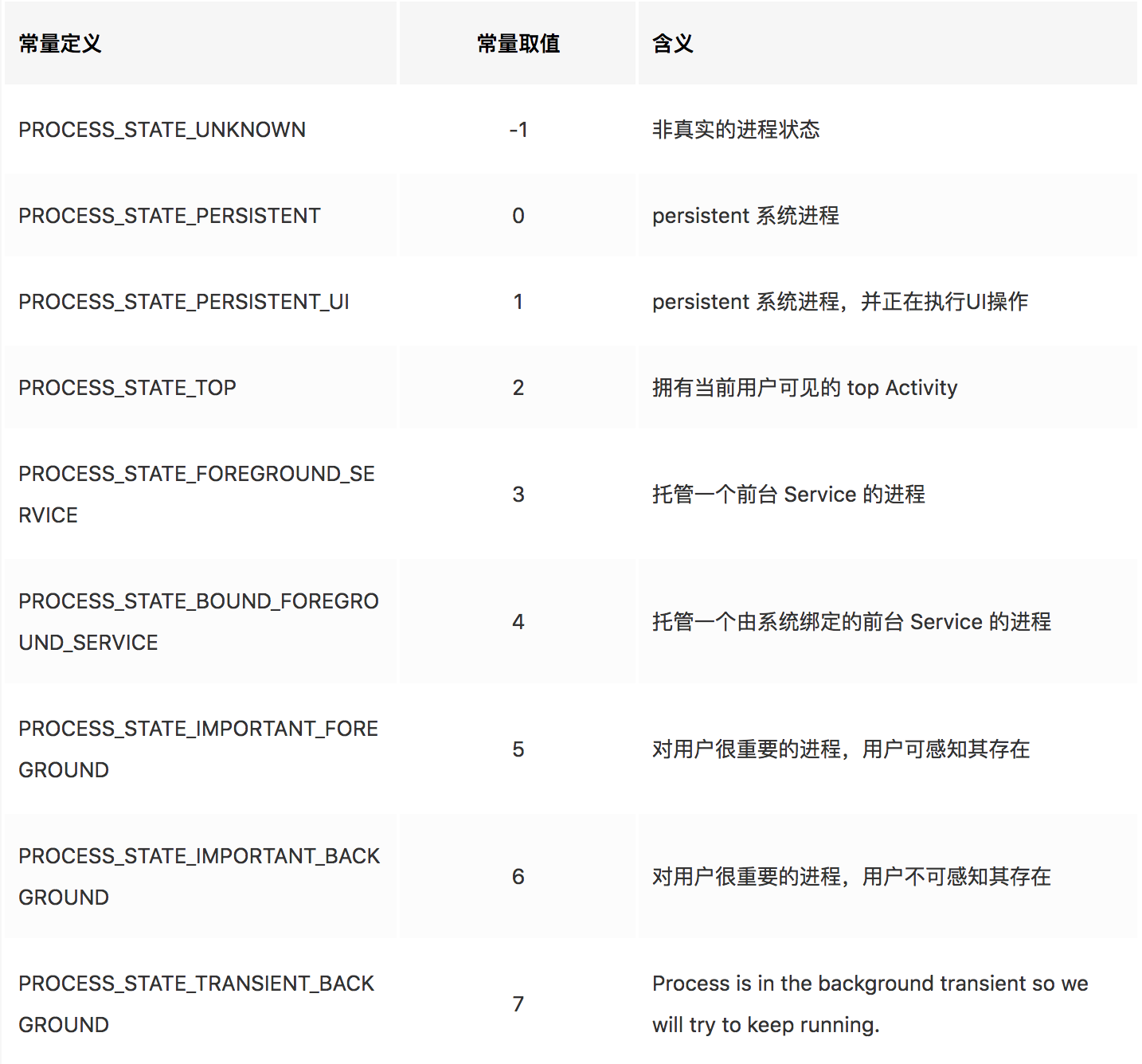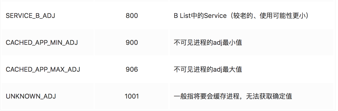 FOREGROUND_APP_ADJ, VISIBLE_APP_ADJ, PERCEPTIBLE_APP_ADJ,