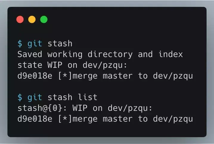 git stash命令可以把现在的工作区全部的修改,包括新文件,修改、删除等所有的操作,全部保存起来,恢复现场,把修改放到暂存区并用上一次的commit信息来命名这次储存(用一个别名来条记录,这里记作 stash@{0},方便使用)git stash list列出暂存区所有记录,如果有多次暂存就会有多条记录,可以看到此时有一条记录