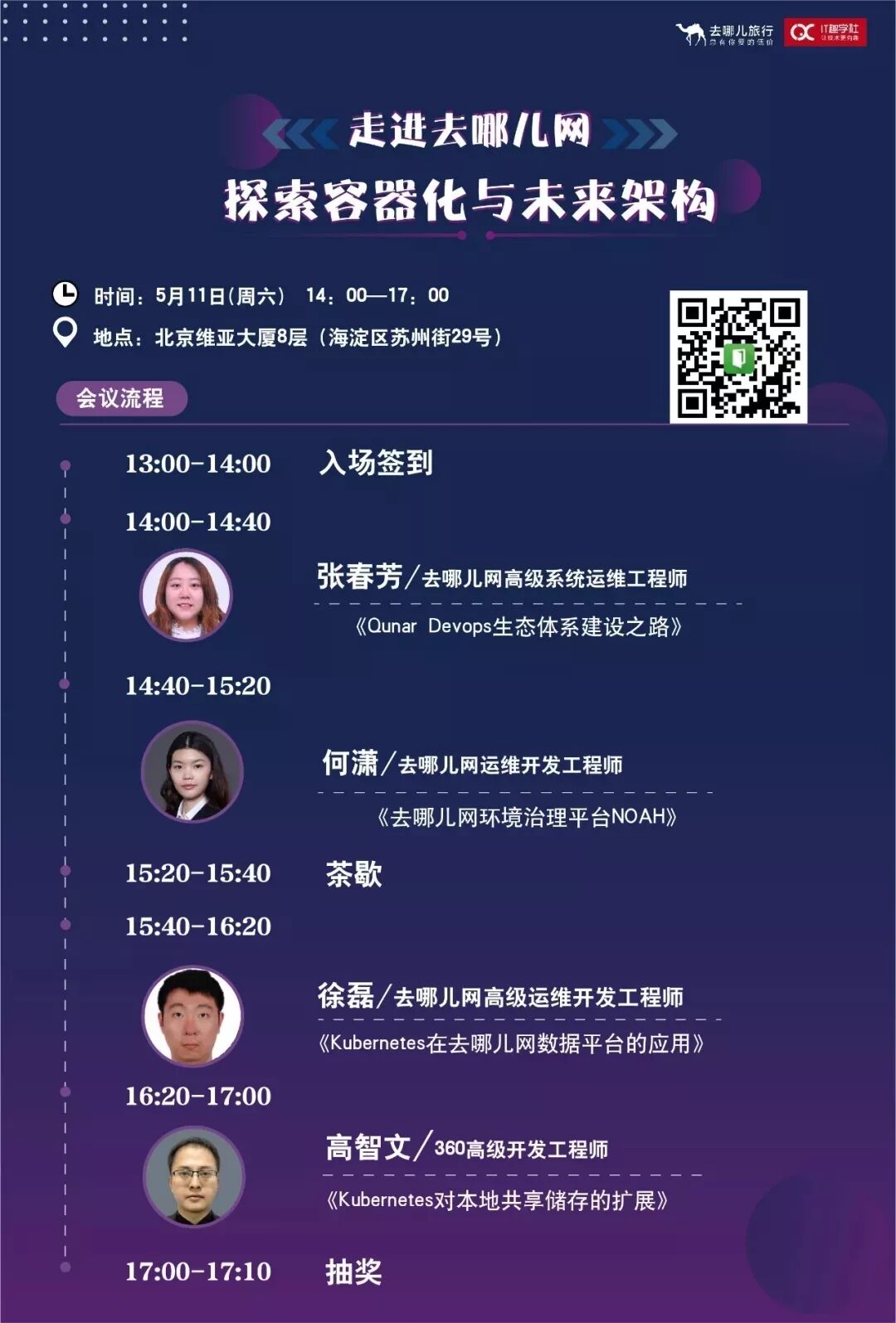 5月11号,去【去哪儿网,探索容器化与未来架构】技术沙龙~