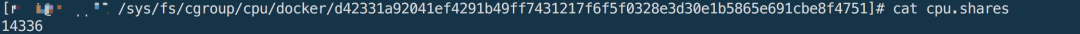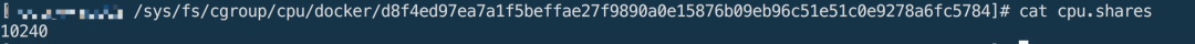 查看该容器cgroup的cpu.shares文件内容如下。