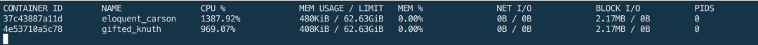 4、两个容器使用cpu的stats,一个容器分到14核的相对cpu计算时间,另一个容器分到10核的相对cpu计算时间: