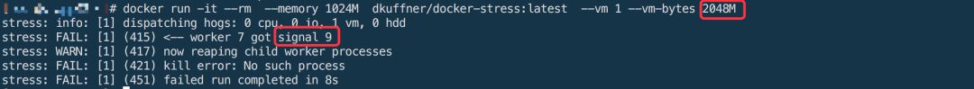 3、当容器使用的内存量超过1024M,则容器会被kill -9掉。