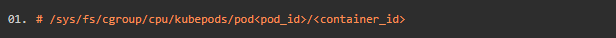 使用kubernetes编排工具创建的容器,则与容器关联的cgroup均在运行该容器宿主机的/sys/fs/cgroup/cpu/kubepods/下,具体的格式如下所示: