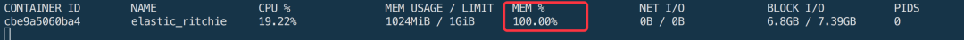 2、查看容器memory的stats,内存使用率100%。